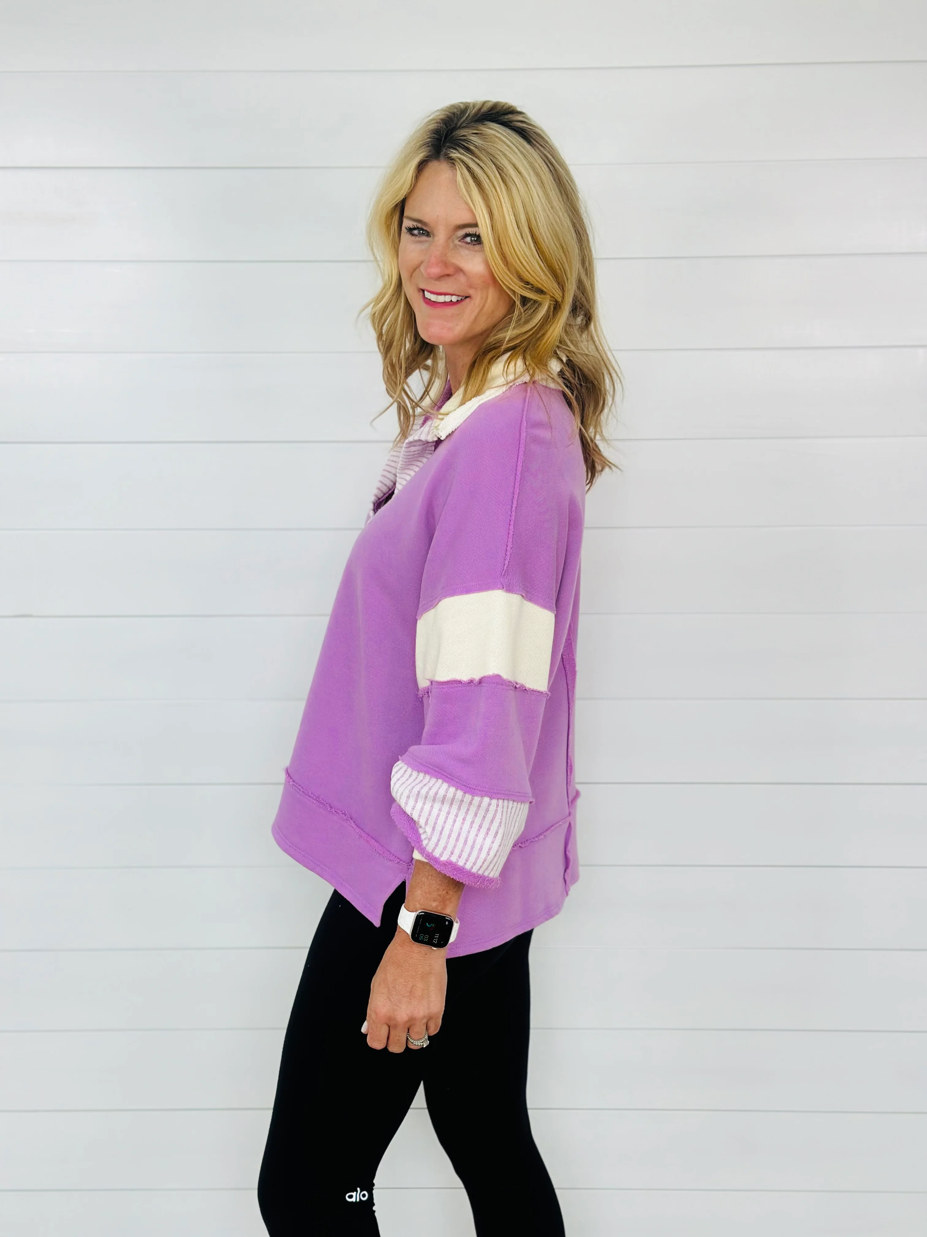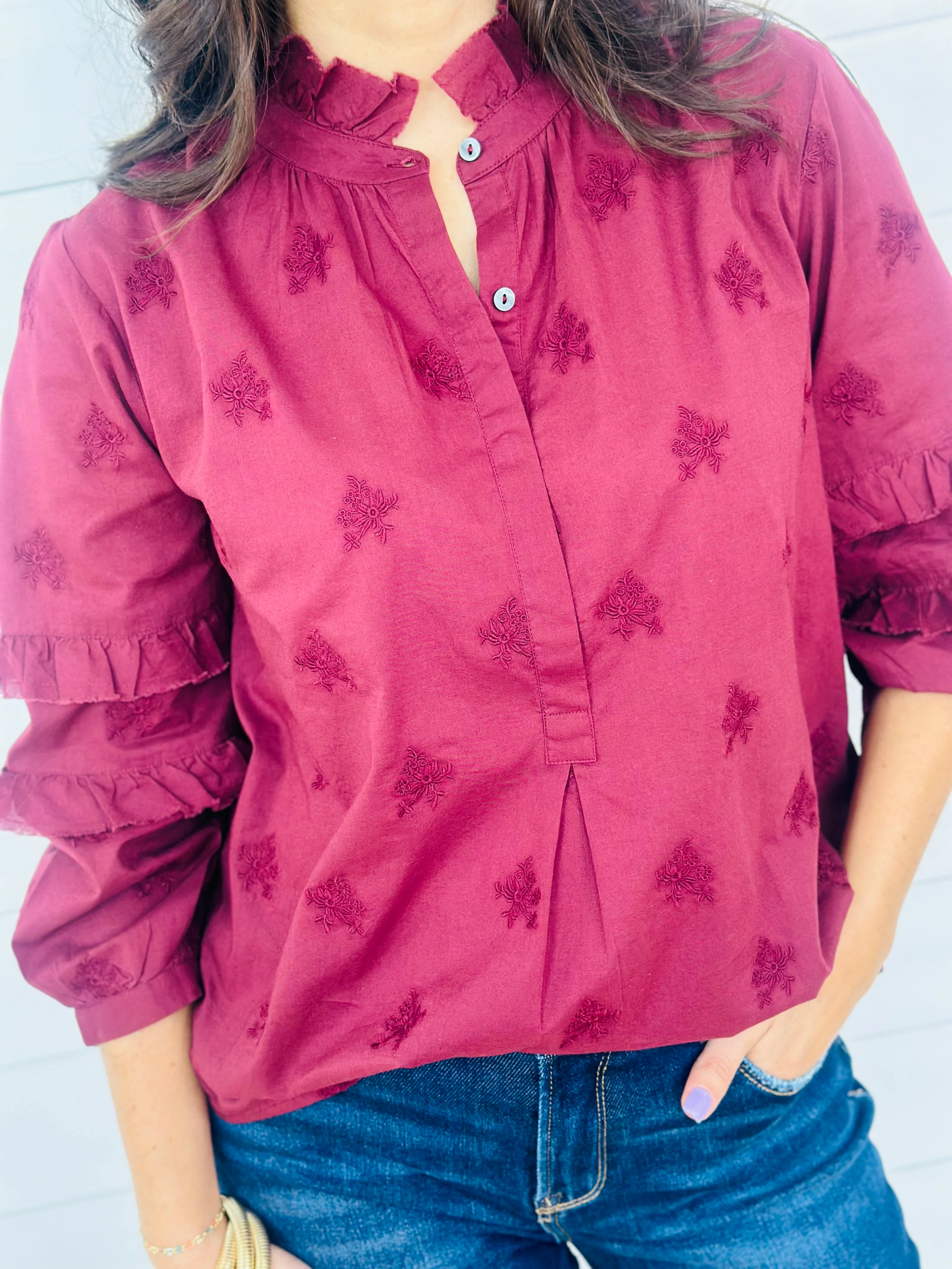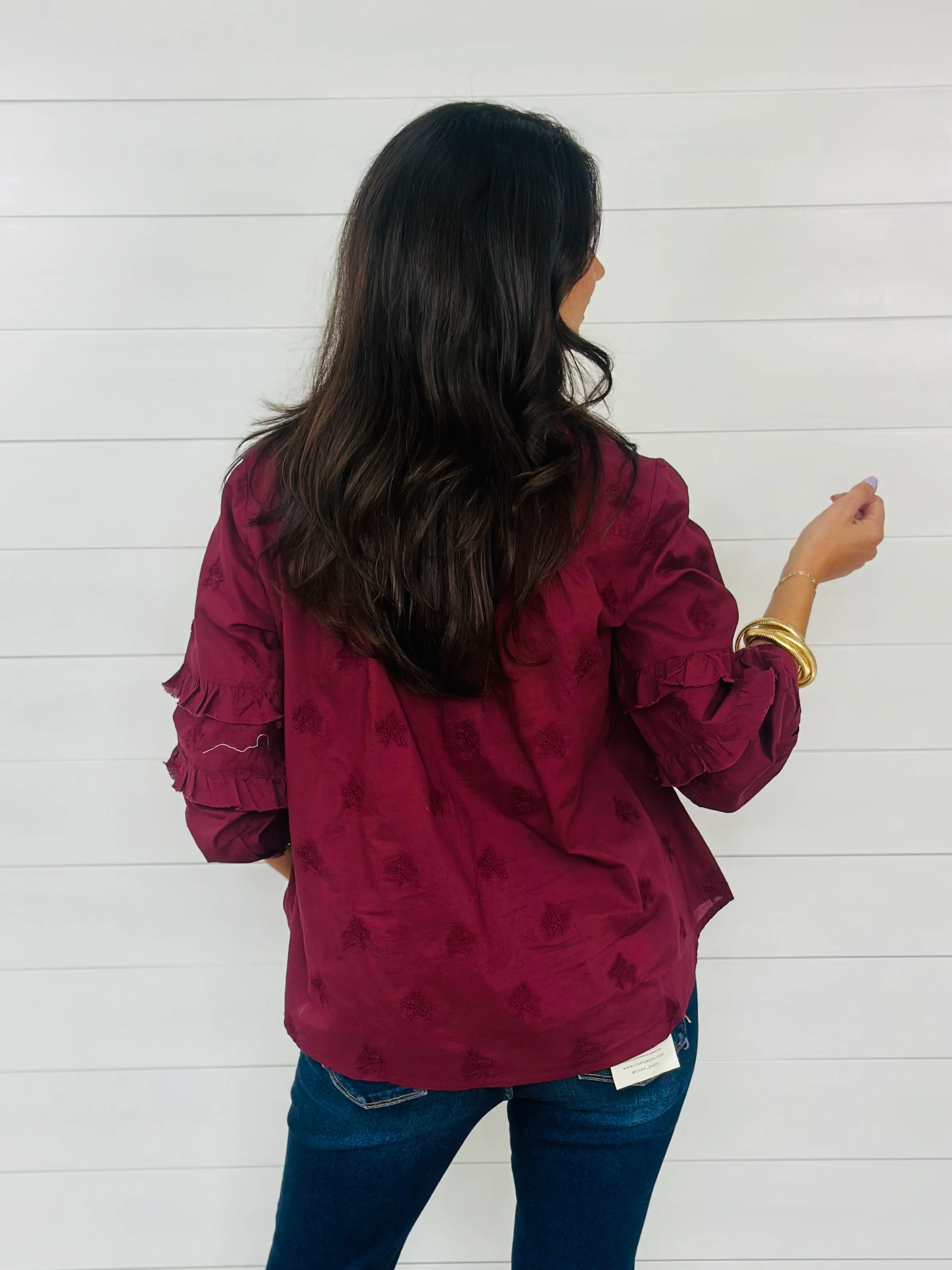 DOUBLE RUFFLE SLEEVE TOP-WINE