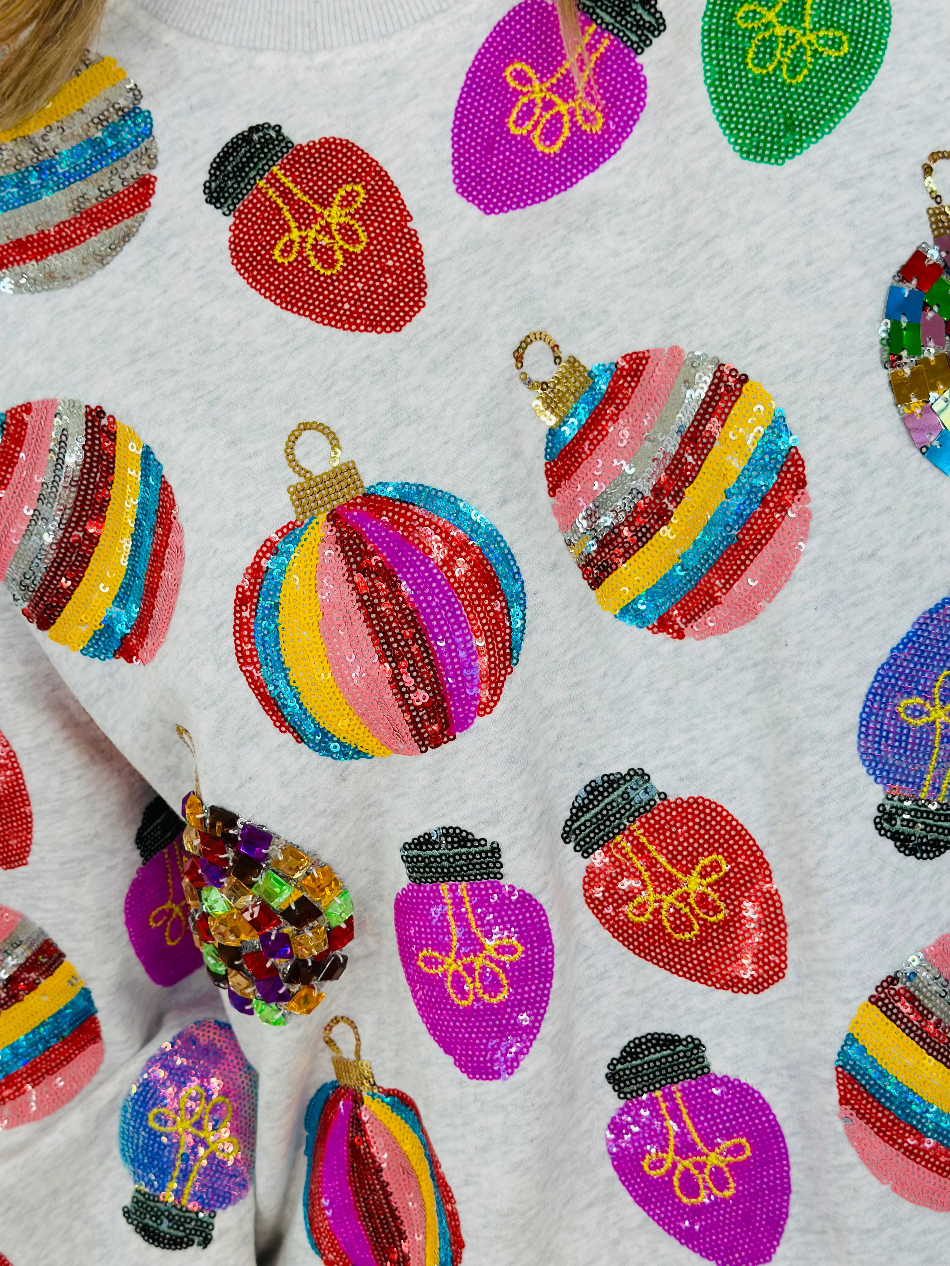 GREY SCATTERED MULTI ORNAMENT/LIGHT SWEATSHIRT