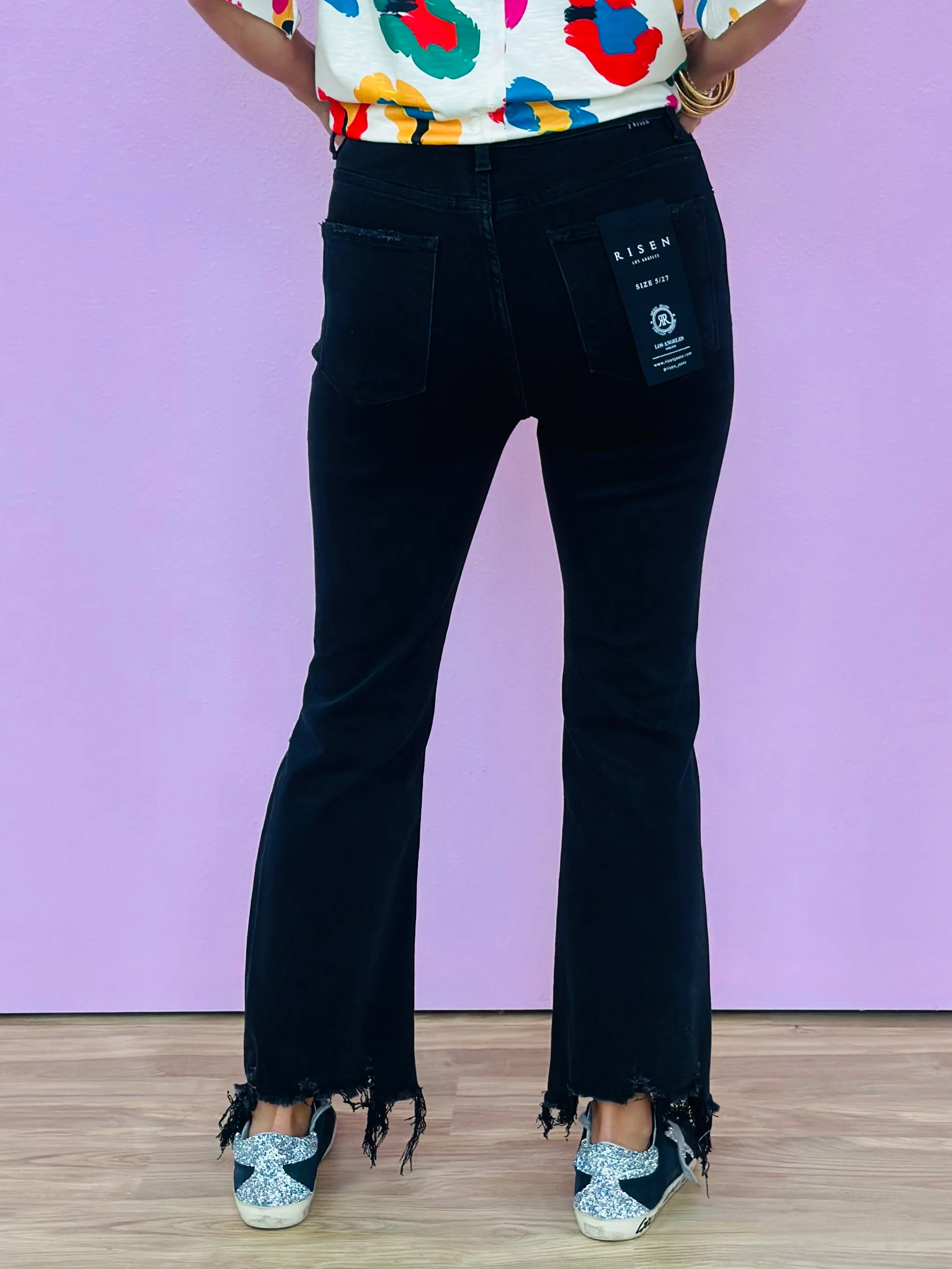 RISEN-BLACK DISTRESSED KNEE JEANS
