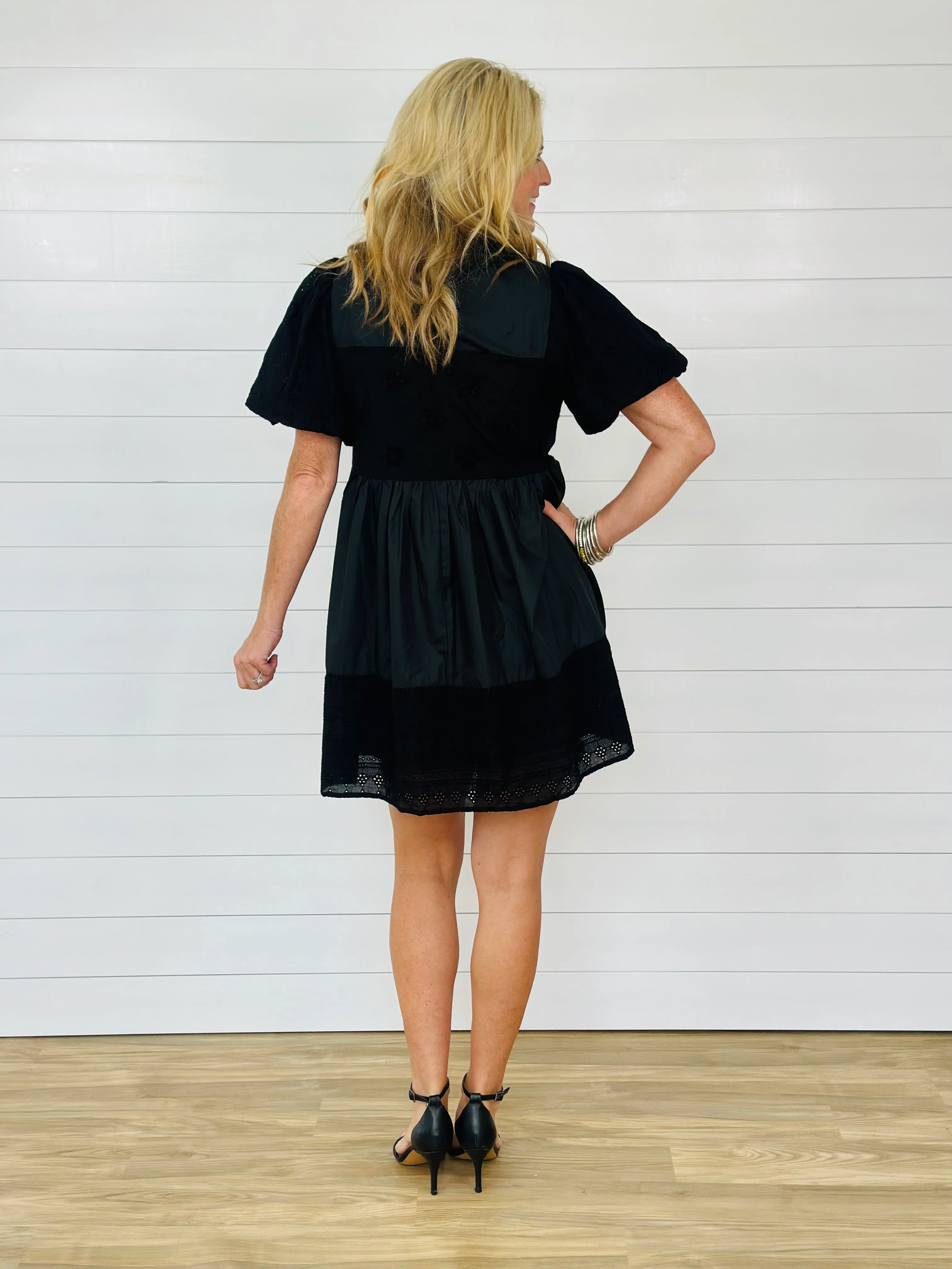 ELISE EYELET DRESS-BLACK