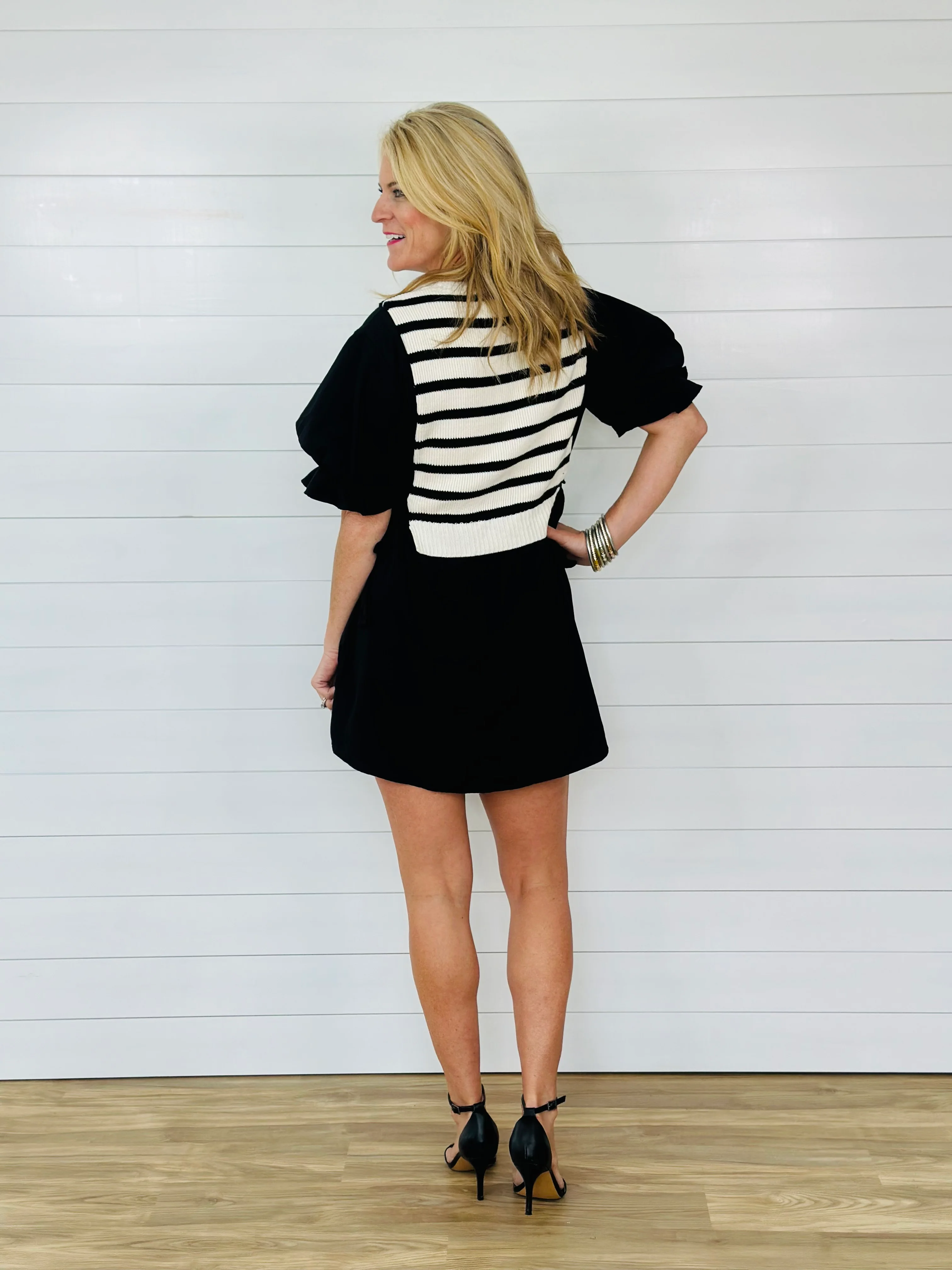 SEQUIN STRIPE DRESS-BLACK